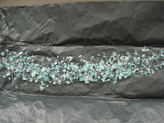 About a year ago I followed a few workshops with Veerle from www.nevousinstallezpas.be at the MIAT (Museum Industrial Archeology) in Gent. She is a real crochetqueen to me and makes very very very beautifull things. She introduced us in the world of a crochet needle (a very thin one) and very thin tread to make jewelry. I immediately fel for this technique.